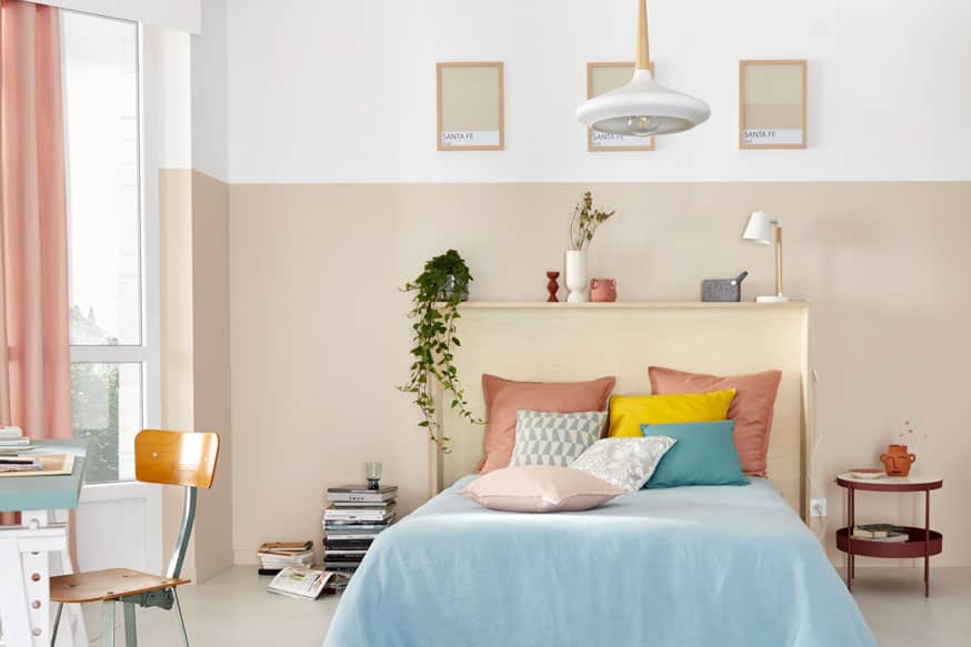 Les coloris ? Plus soutenus. Bordeaux, kaki, bleu nuit, terracotta… Ces tons profonds réchauffent l’atmosphère de la chambre et invitent naturellement à la détente. On cherche clairement le côté « nid douillet ».